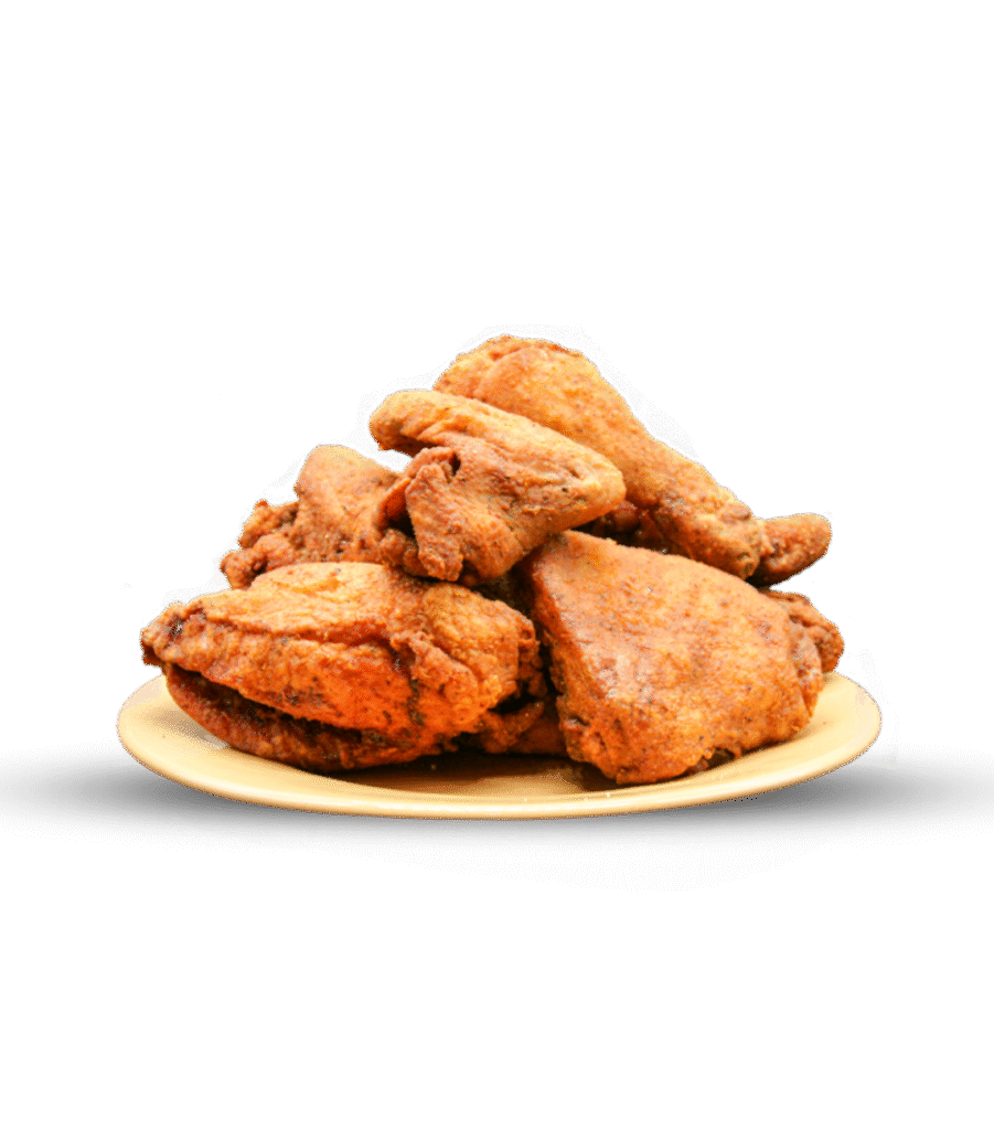 8 piezas de pollo con papas fritas y ensalada coleslaw + 2 vasos de té frío.